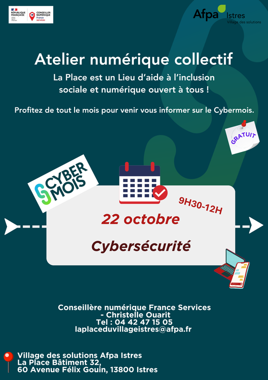 Ateliers numériques collectifs ouverts à tous et gratuits! Renseignements et réservations au 04 42 47 15 05 La thématique de la journée : Cybersécurité